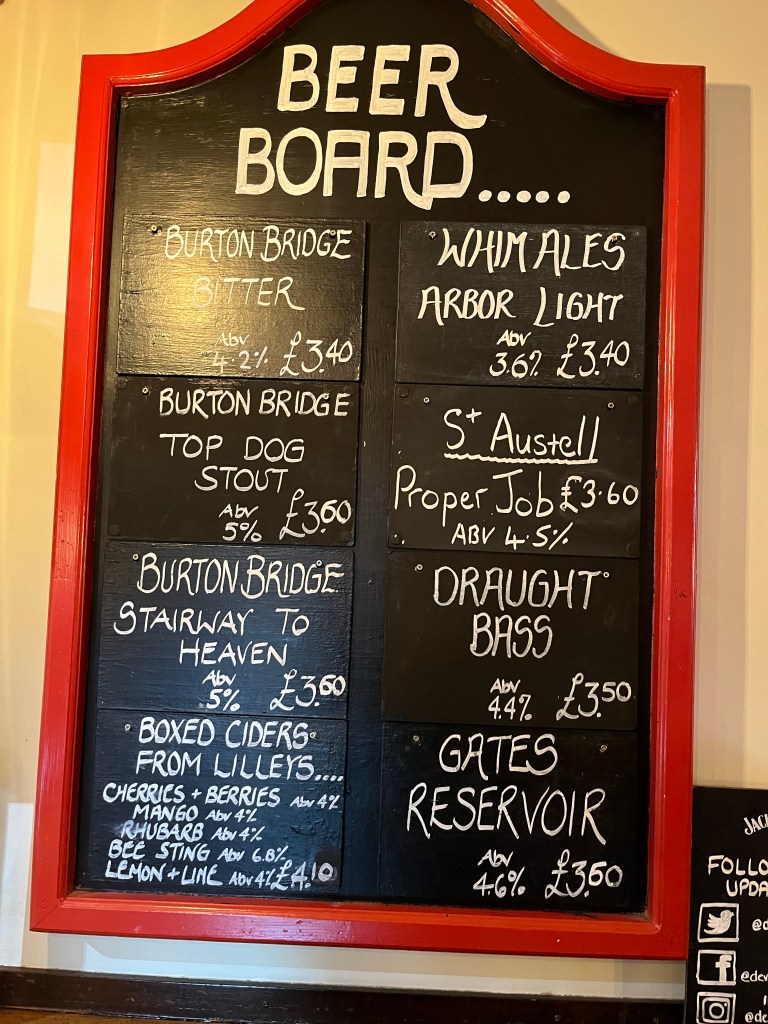 A couple of cask ales on from North Riding Brewery, one from Gates Burton Brewery and Allsopps Brewery. Went with Allsopps Brewery – IPA, another brewery based in Burton-on-Trent.
