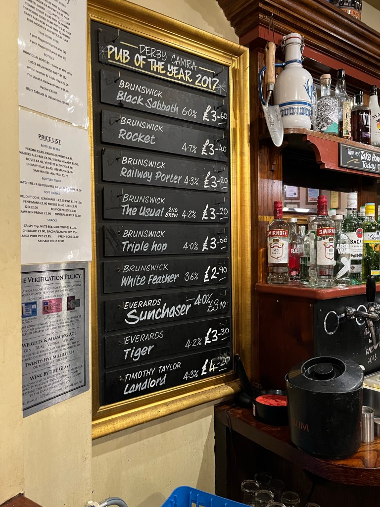 Last call of the day and only a short walk from Derby Train Station is “The Brunswick”. 16 Cask beers on here, some of which are from their own on site brewery (added in 1991).