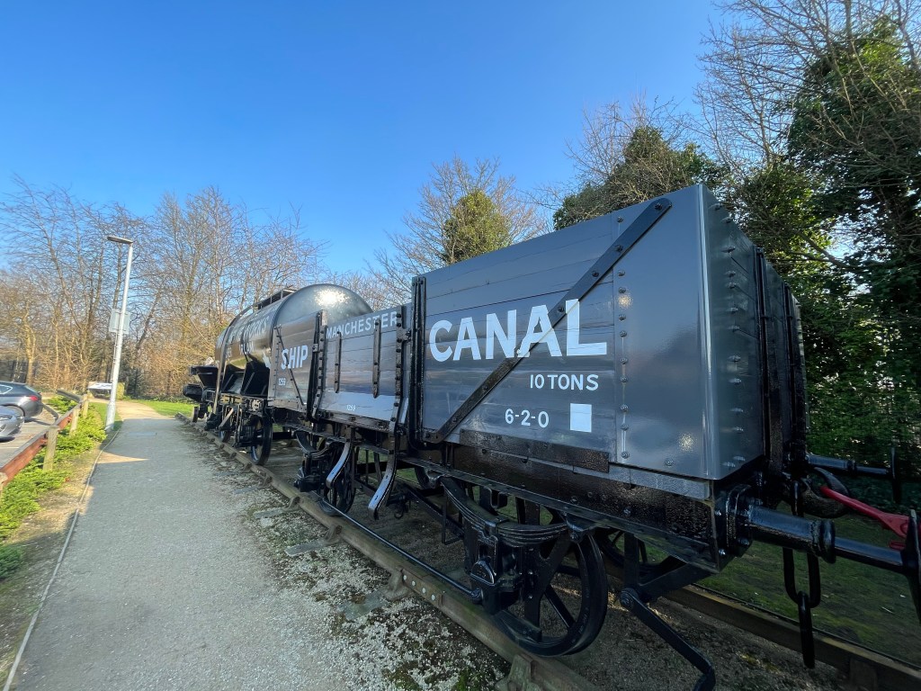 Nicely done up station including Signal Box, history of signalling and a loco and wagons from the Manchester Ship Canal.