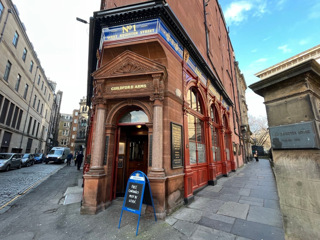 First point of call in Edinburgh was to Cafe Royal. This is one of the finest Victorian pub interiors in Scotland, dominated by an impressive oval island bar with ornate brass light fittings and magnificent ceramic tiled wall murals of innovators, made by Doulton from pictures by John Eyre. It is also listed by CAMRA as a Nationally Historic Pub Interior.