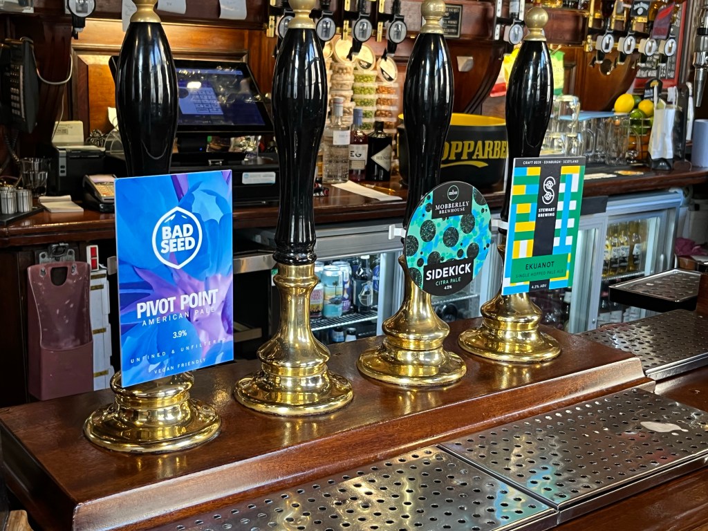A raised bank of hand-pulled cask handles in the middle of the bar from Strathaven Ales and Stewart Brewing. Couldn’t decide between 2 of the Strathaven Ales (Duchess Anne and Craigmill Gold) so went with both.