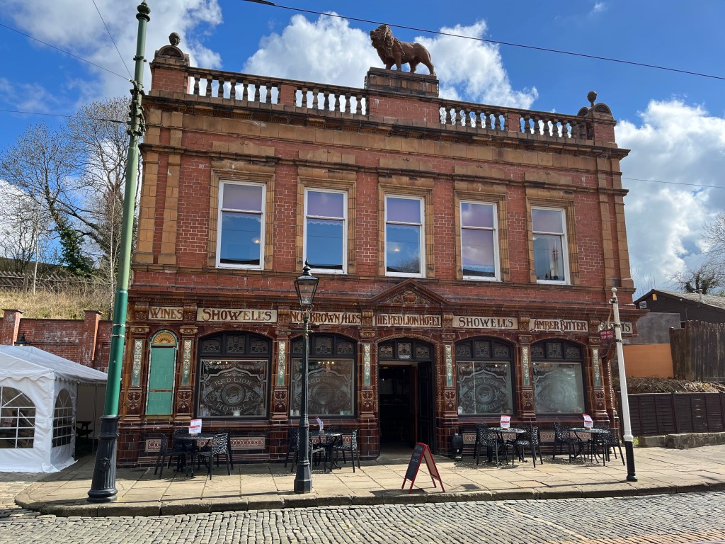 Situated in The Tramway Village at Crich is the Red Lion Hotel. The Red Lion originally stood opposite the Potteries Electric Traction Tramway Depot in Stoke-on-Trent. It was demolished in the early 1970’s but the facade was carefully taken down brick by brick by members of the Tramway Society and was eventually rebuilt at Crich using original materials wherever possible and reopened in 2002 at a cost of £500,000. It’s now just one of the buildings that line the street and provide an authentic setting for the street tramway cars.