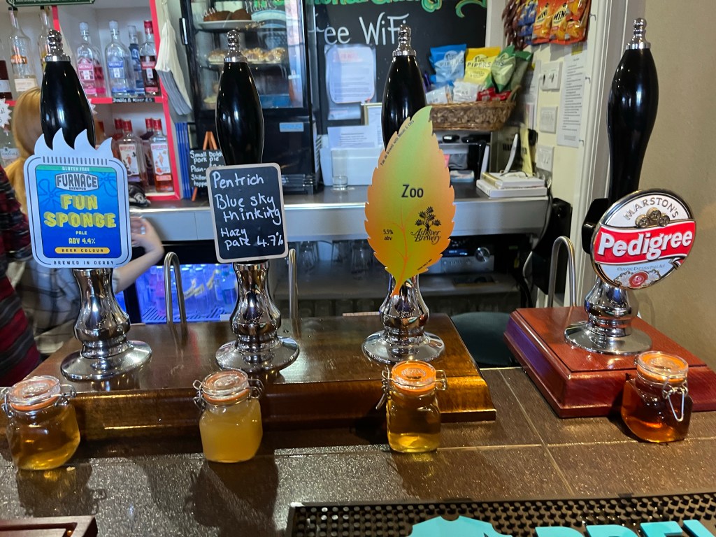 Walking in the bar looks brilliant, casks on the wall showing available beers. Tried a few here “Cloudburst by Lenton Lane”, “Inbetween Days by Castle Rock” and “Chocolate Guerrilla by Blue Monkey”