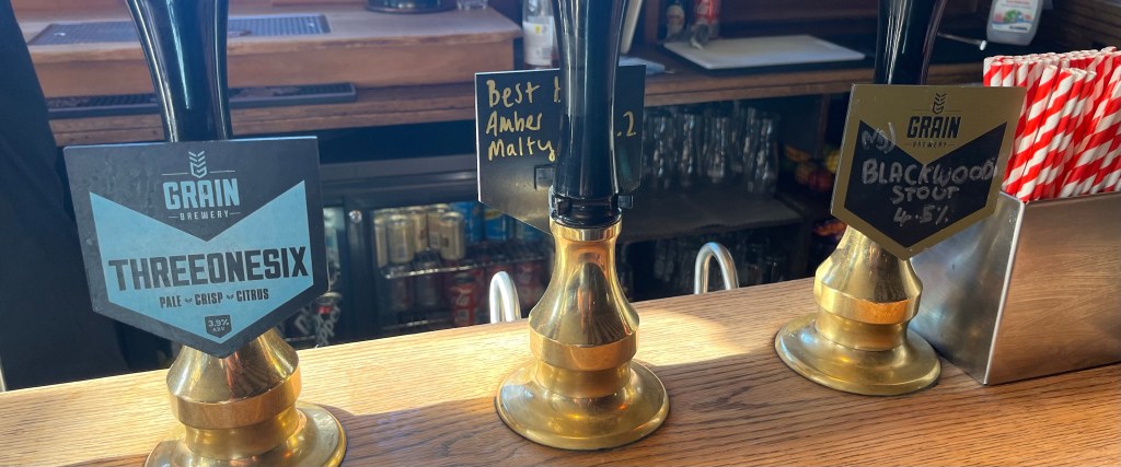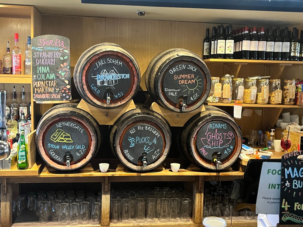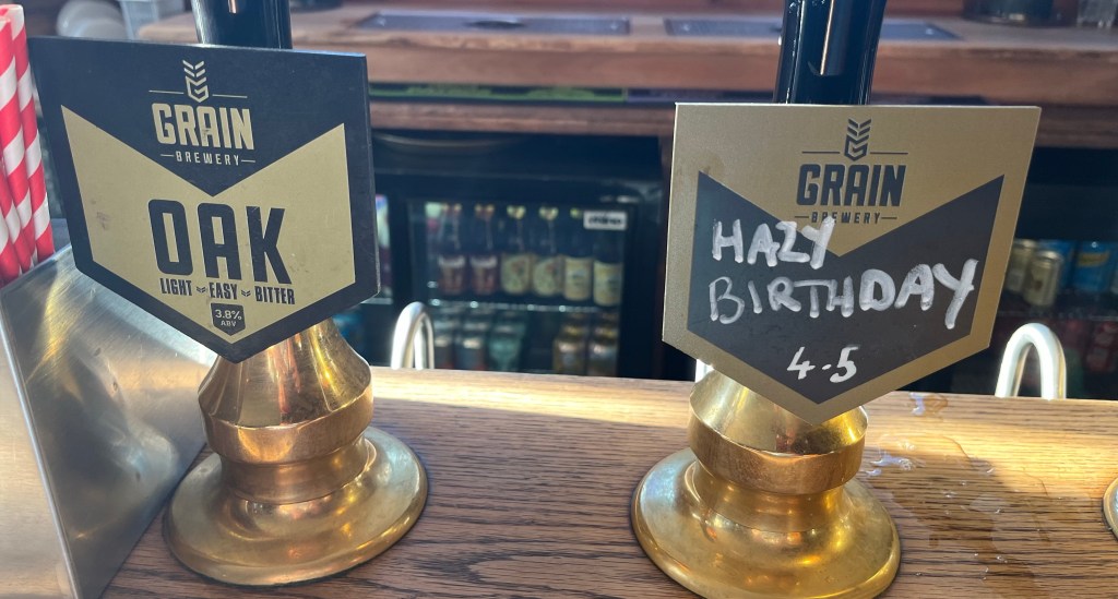 4 cask ales available on the bar, all from Grain Brewery from Harleston, Suffolk. Couldn’t decide between two so went with the “Hazy Birthday” and “Threeonesex”. Great beer garden in the back aswell here.