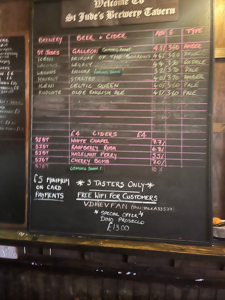 Last call of the day in Ipswich, a walk out of town again. Owned and run by St Judes Brewery.