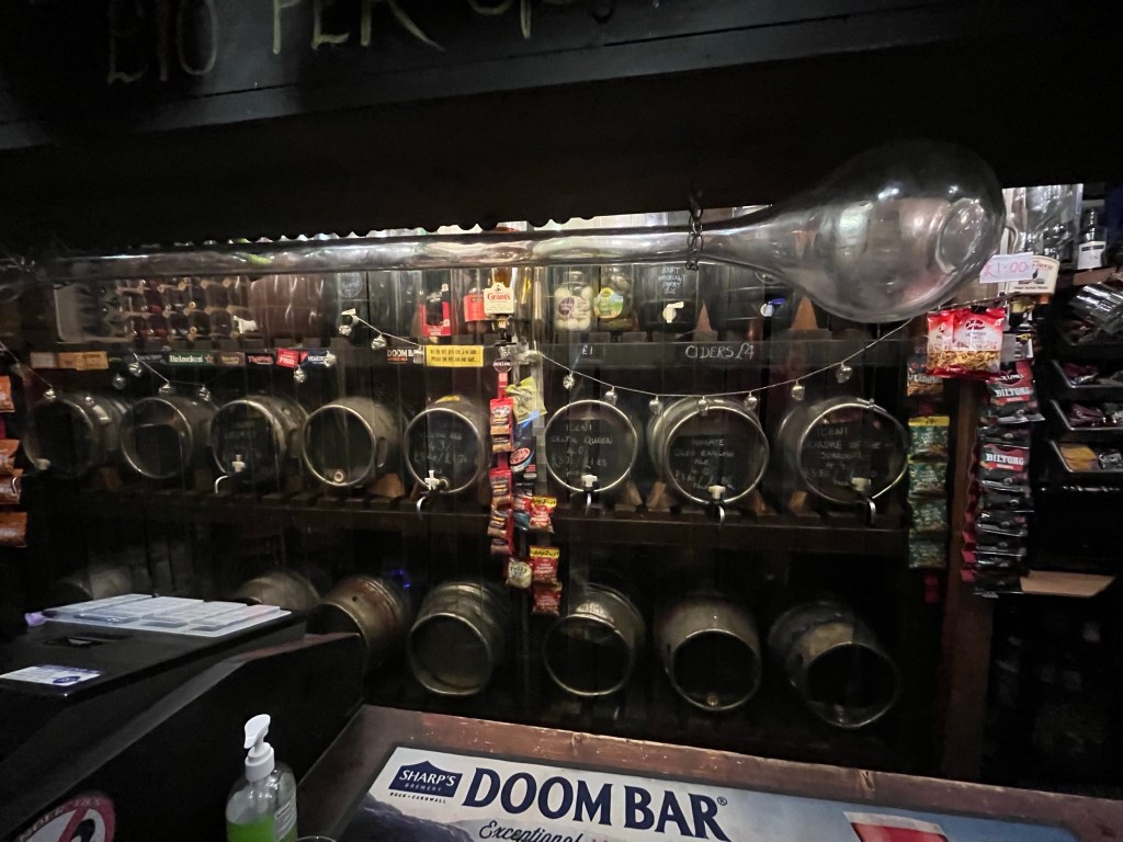 A great selection of ales available here served direct from casks, alongside mini pins of real cider (also brewed here).