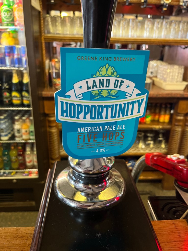 Choice of three beers here, all from Greene King. Went with “Land of Hopportunity”, an enjoyable Five Hop American IPA.
