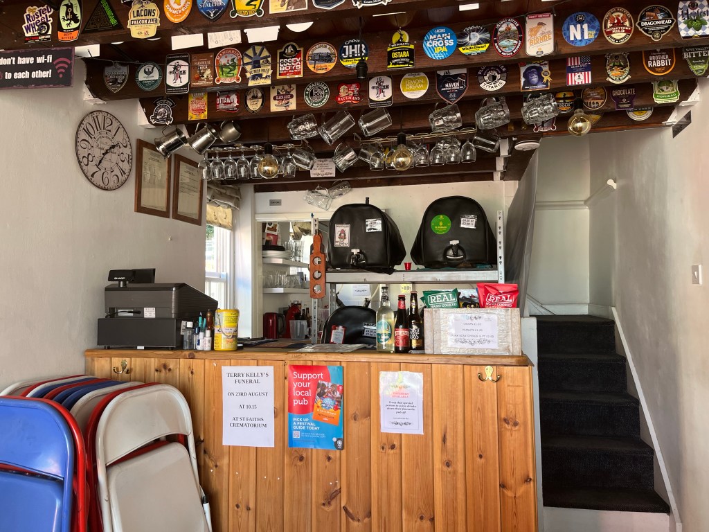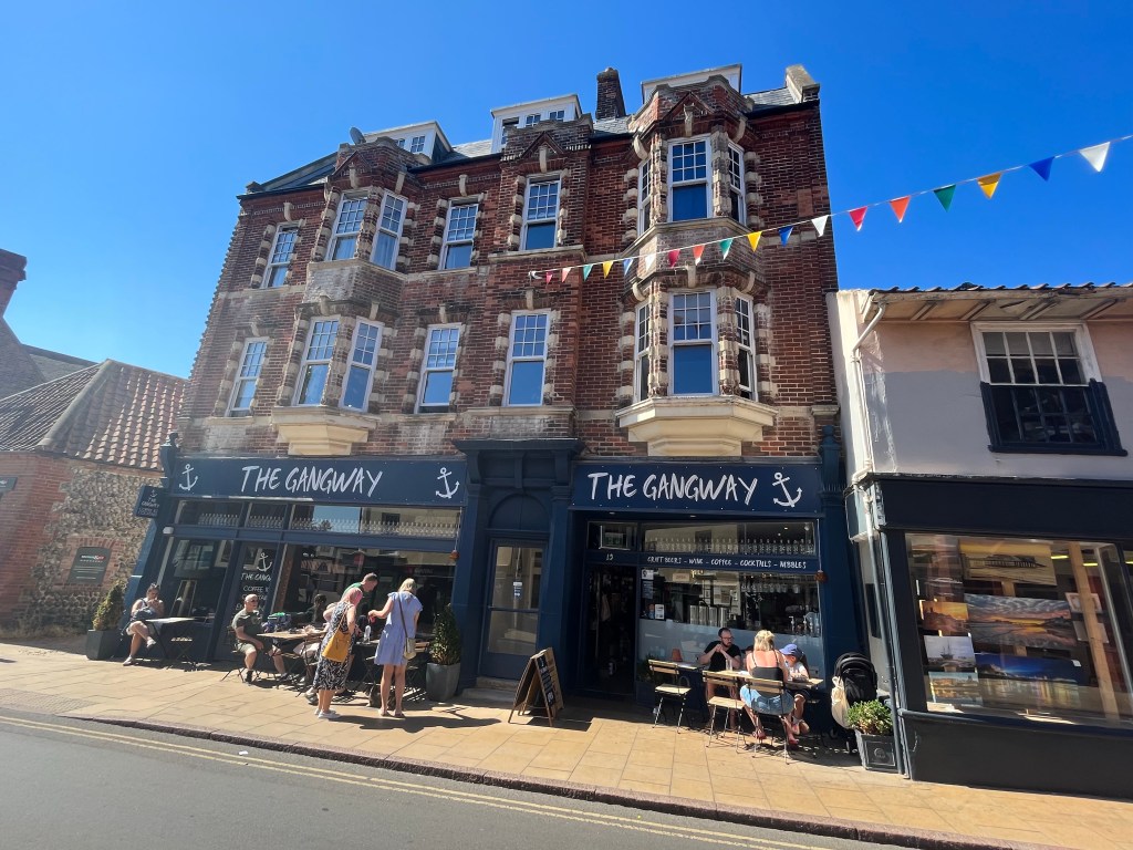 A steady walk downhill from the railway station towards the town centre, and into “The Gangway”, owned by the same people who own the one in Sheringham.
