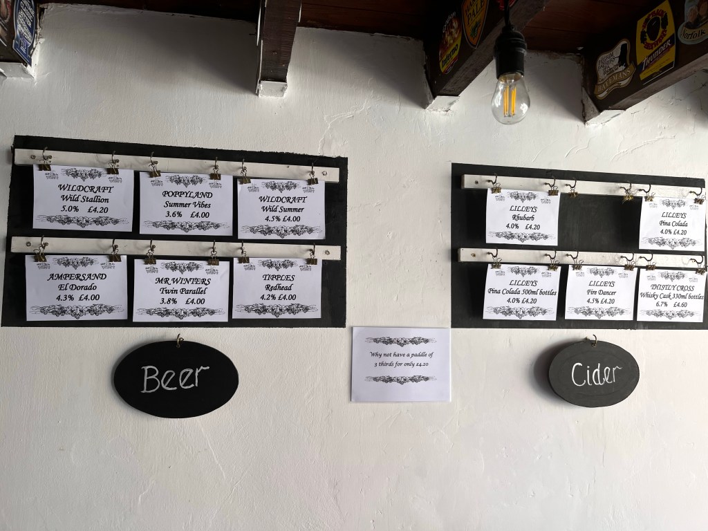 A choice of 6 Beers and 5 Ciders were on today. Love to see beers served on gravity behind the bar. Started with “Summer Vibes” from Poppyland Brewery located in Cromer, followed by “Redhead” from Tipples Brewery in Salhouse.