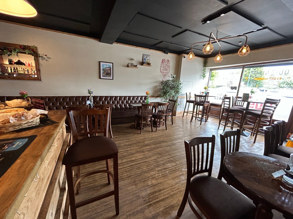 A similar setup to the last bar with lots of seating around (along with outdoor seating at the front), with the bar being on the left hand side.
