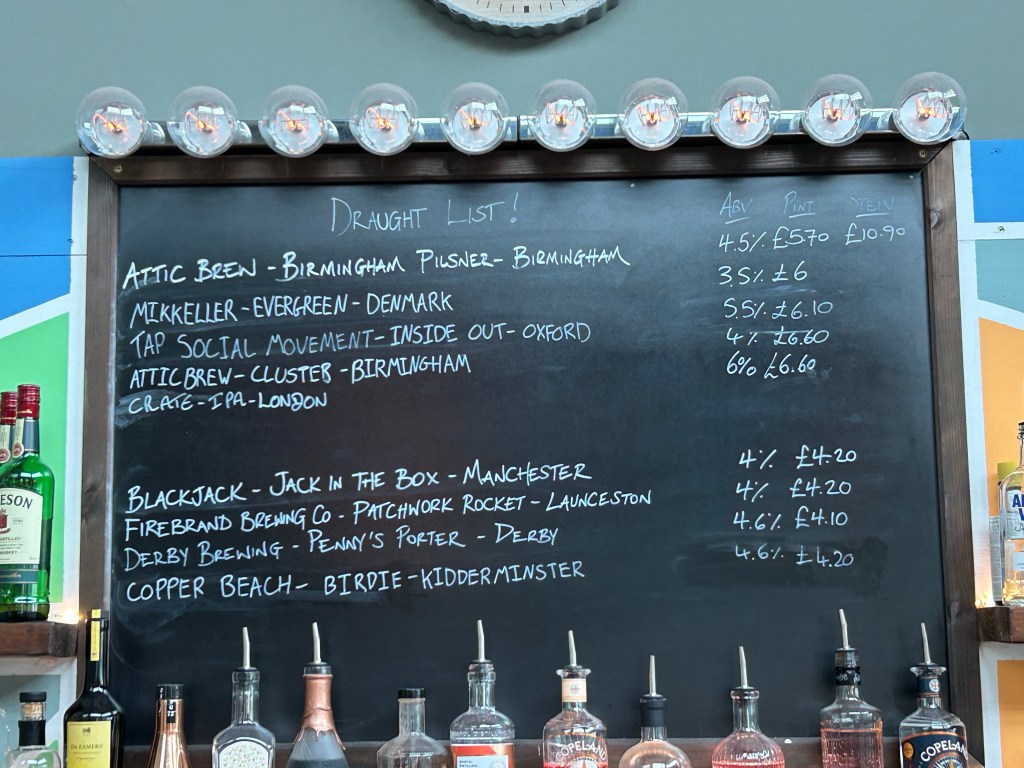 A fantastic range of beers here from some breweries you dont often see in the area. Breweries from Scotland, Kidderminster, Derby and Manchester. I went with “Birdie” from Copper Beech Brewing Company based in Kidderminster.