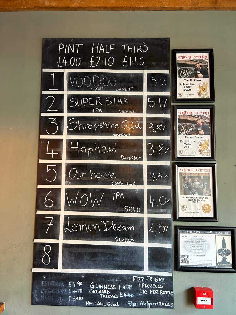 Two busses to the next Mocropub changing in Solihull Town Centre. “The Ale Rooms” is located in Knowle which is about 10 minutes on the bus out of Solihull. The Ale Rooms used to be a former funeral directors, and has won several CAMRA awards since it opened in 2016.