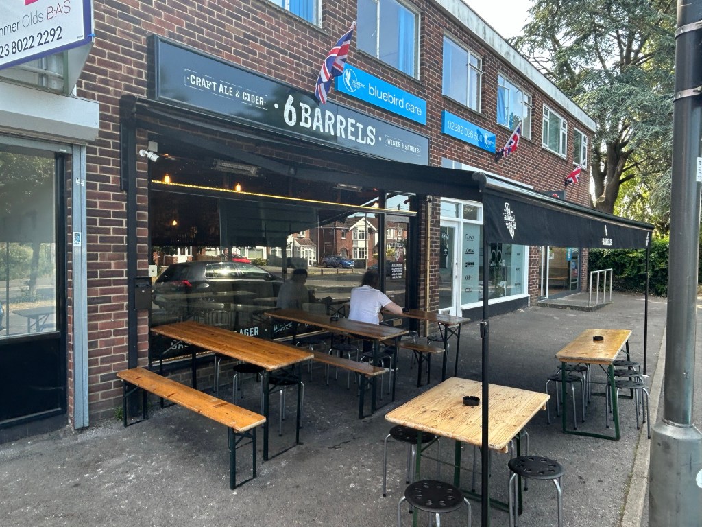 Back onto the train, changing at Southampton Central and getting off at Totton. A short 10 minute walk through Totton Town Centre brings me to “6 Barrels”. A small Micropub and craft bar at the edge of the town centre.