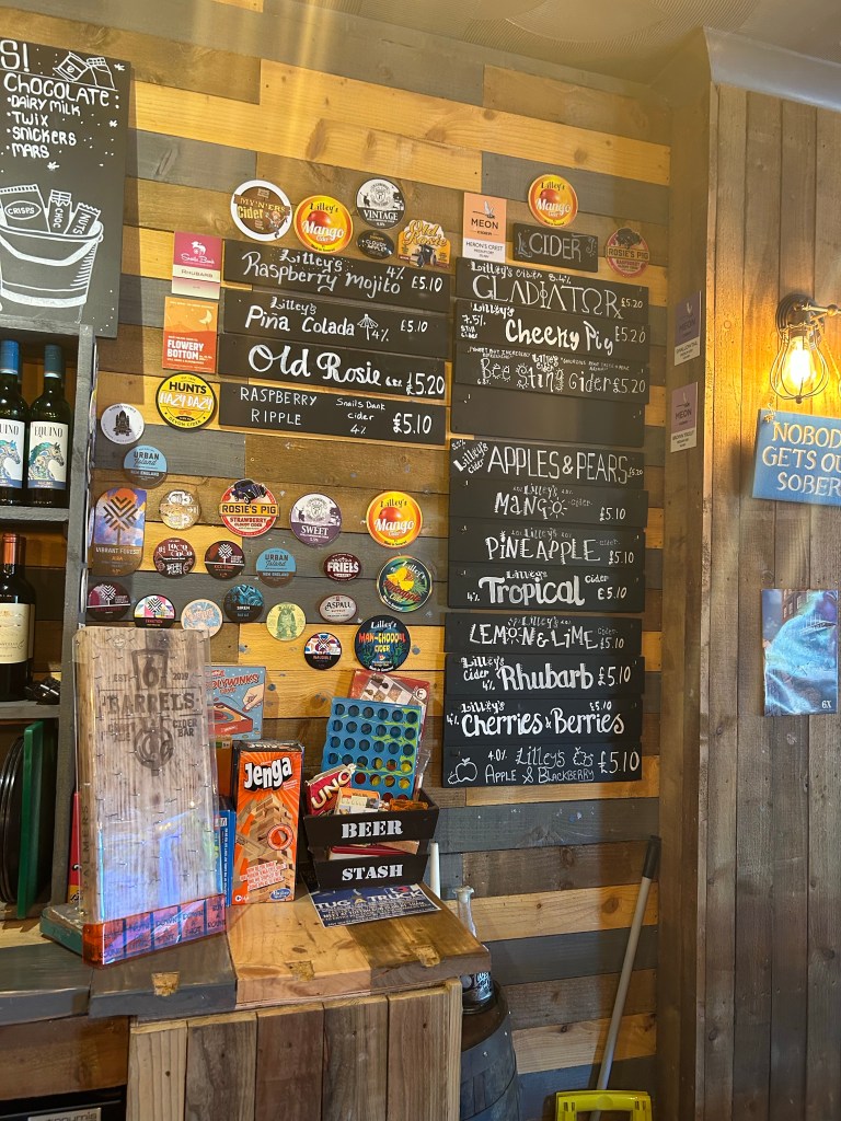 I started with “Rodeo Joe” from Bat Country then moved onto one of their keg beers “Open Face” dfrom a choice of 5 rotating keg beers. A good selection of still cider is also available with a board showing all the flavours.