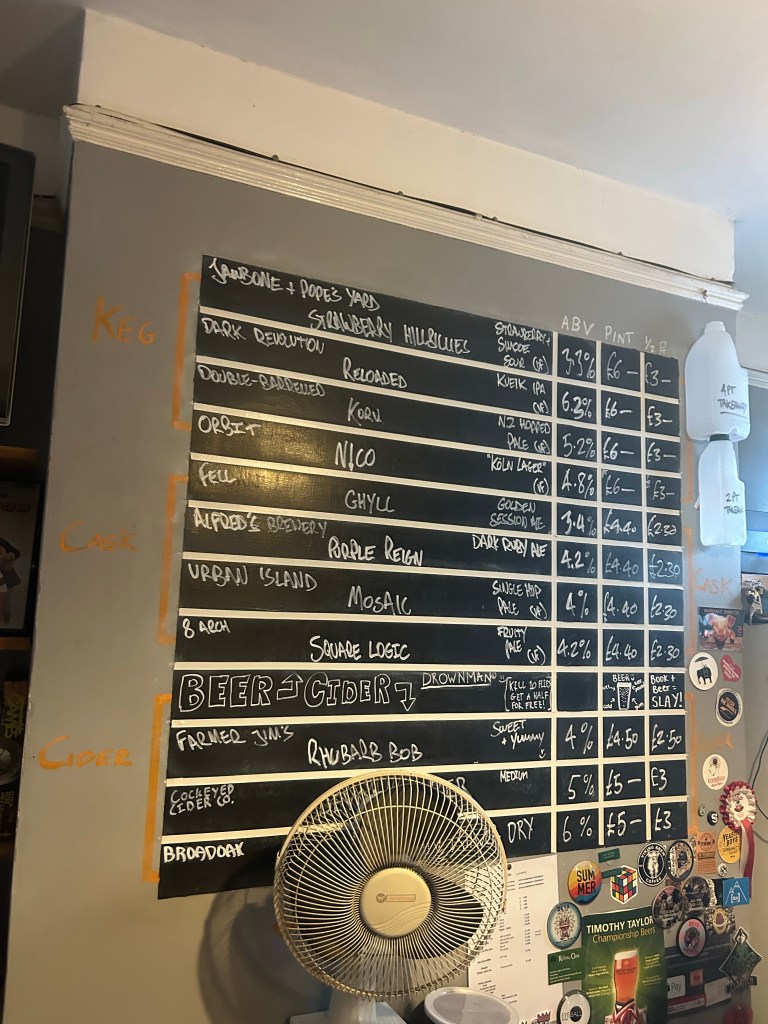 A fantastic choice of 9 keg beers and 3 cask beers, alongside a can selection. I started with “The Shallows” from Otherworld Brewery in Scotland, a Jamine Tea Sour. I finished with a Vault City can. “Apple, Rhubarb, Maple Pecan”