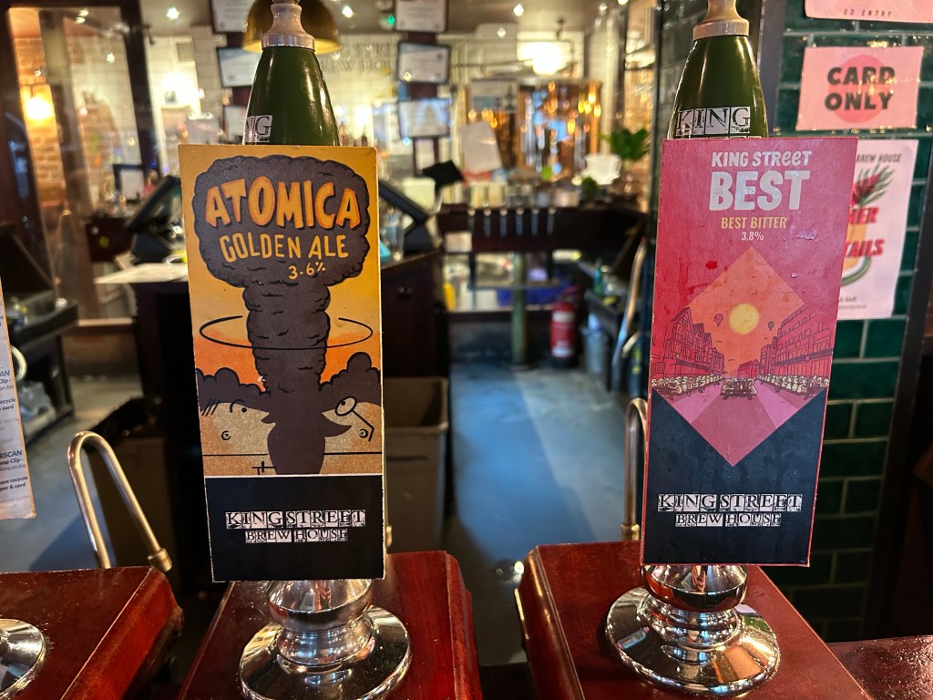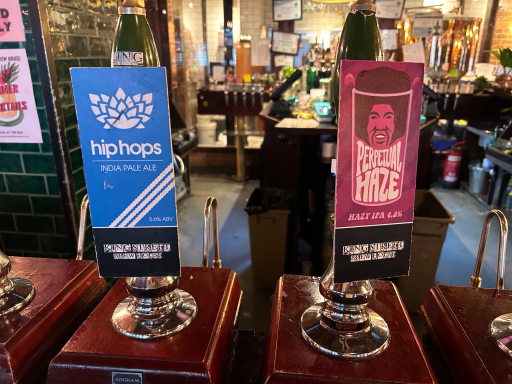 A short walk to the other end of King Street brings me to “King Street Brewhouse” on the corner. This opened in March 2016 and brews both cask and keg beer on site. The brewery can be seen behind the bar.