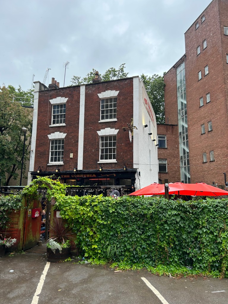 A 1 minute walk to the next pub “The Cornubia”, hidden amongst large financial buildings this hidden gem of the pub was built in 1775. The current owners have added a large beer garden, making this a popular spot.