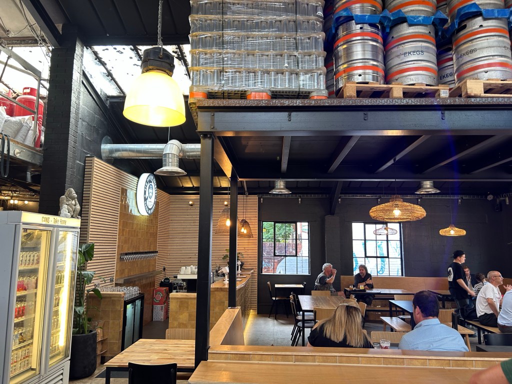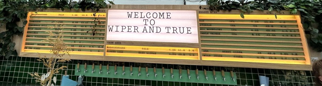 An Uber journey up to this one as it was a bit of a walk. “Wiper and True Brewery Tap” is a huge area both inside and outside. This opened a year ago in July 2022. A huge brewery setup is located at the back of the building, with the bar to the left. Streetfood vendors outside.