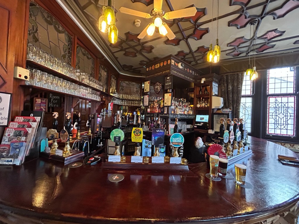 My first calling point of the day was to the “Black Horse”. A stunning Grade II listed Victorian Pub with an impressive tiled bar and wall, along with a mosaic floor. It is listed on CAMRAs National Pub Heritage Inventory. Several small rooms which have been kept amazingly well. The pub is run by Robinsons Brewery.