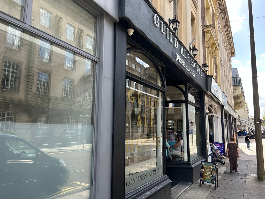 A short walk past the indoor market to “Guild Ale House”, a few doors away from Prestons Guild Hall. This micropub opened in February 2016 and has a great airy feel and high ceilings. A room downstairs with a small lounge in the corner and another room upstairs.