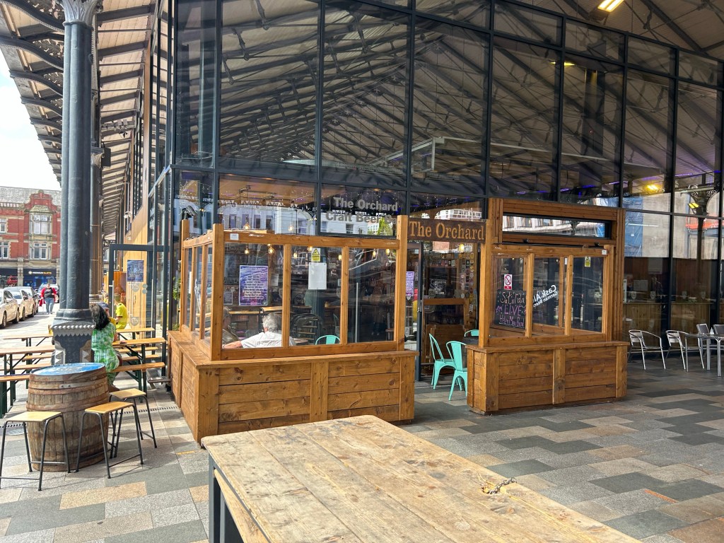 A short walk around the corner to “The Orchard”, sister pub to the Guild Ale House. Located inside the Grade II listed covered indoor market. This bar opened in March 2018. A lot of the decor is utilised from the old market wooden boards.