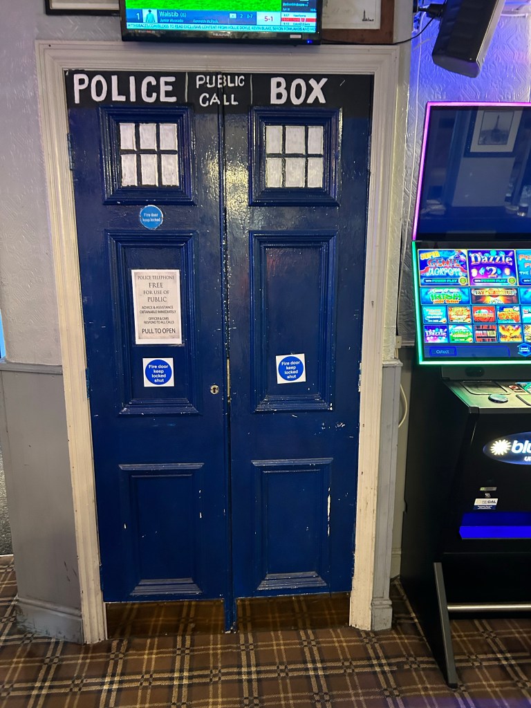 A number of cask ales available in here, including “Bass”, had to be the beer to go for. Bass was well known for being served from a Jug. A really easy drinking classic beer. Loving the tardis door aswell in the pub.