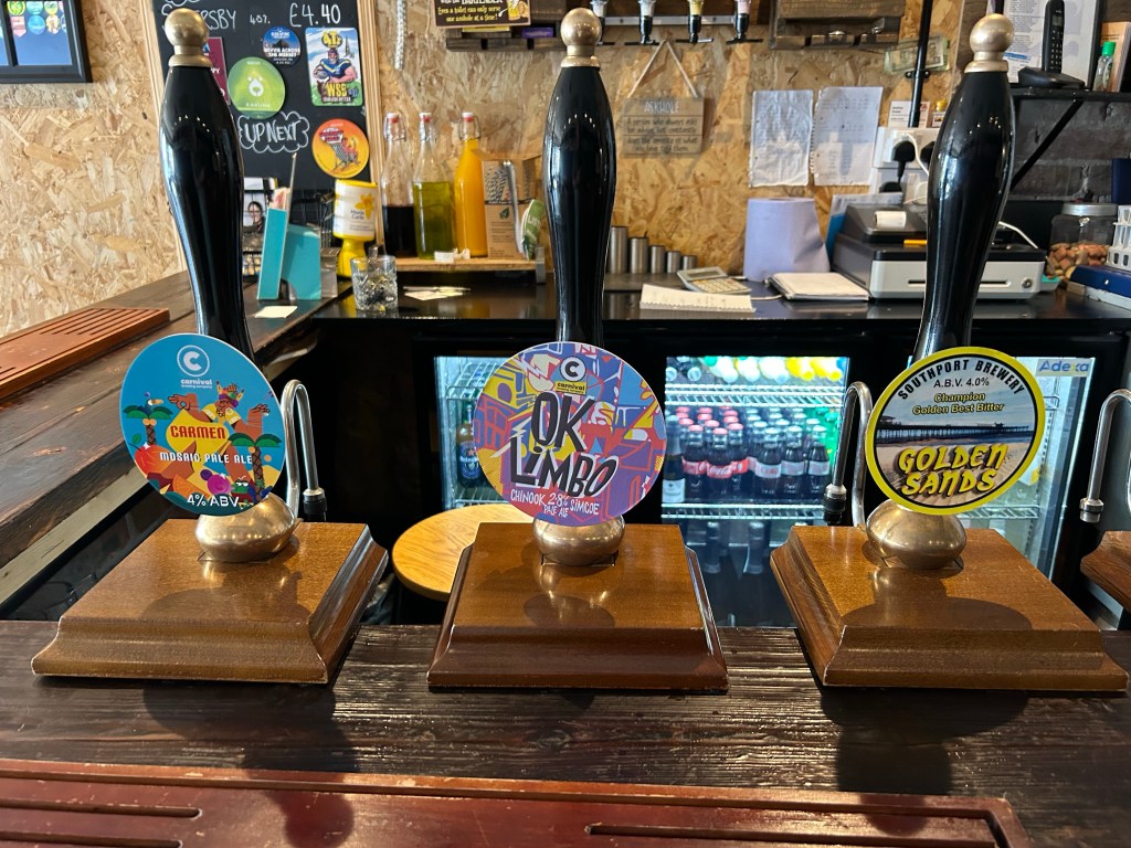 The last call of the evening is to “The Cornerpost”, around a 15 minute walk. The building used to be a former Post Office (hence the name). I got the train back from Blundellsanda & Crosby (but was quicker to walk from the last pub than jump on the train). A warm welcome here from Pete and Paul.