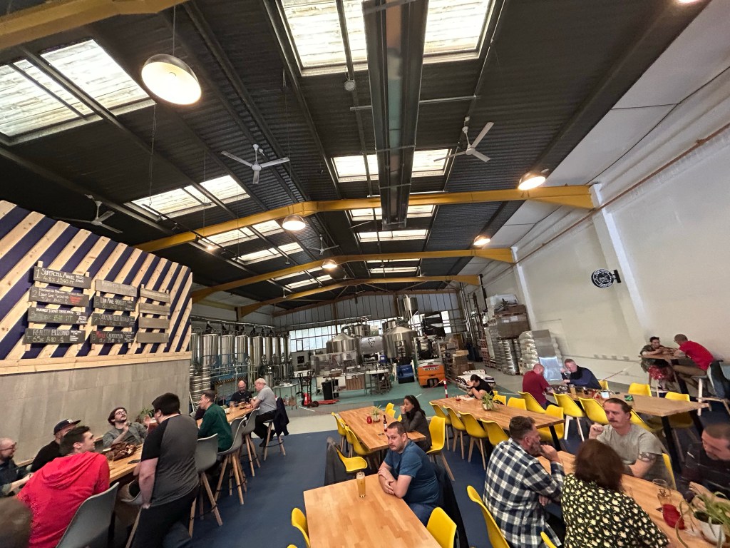 From here I headed back on the train to the end of the line (on the Southport Route) to Hunts Cross. A mile walk from the station takes me into Speke and Venture Point West Industrial Estate. “Big Bog Brewery” is based here, and has a taproom open on a Friday. The brewery started in 2011 in the same premises as Snowdonia Brewery but moved to these larger premises in 2016. They also run the “Strawberry Fields” brewery.