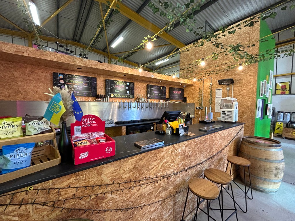 Directly over the road from Azvex is “Carnival Brewing Company Taproom”. The brewery was started in a kitchen in Liverpool after a fundraising event at the Clearview Carnival in 2017. The brewing setup can be seen in the corner of the unit.