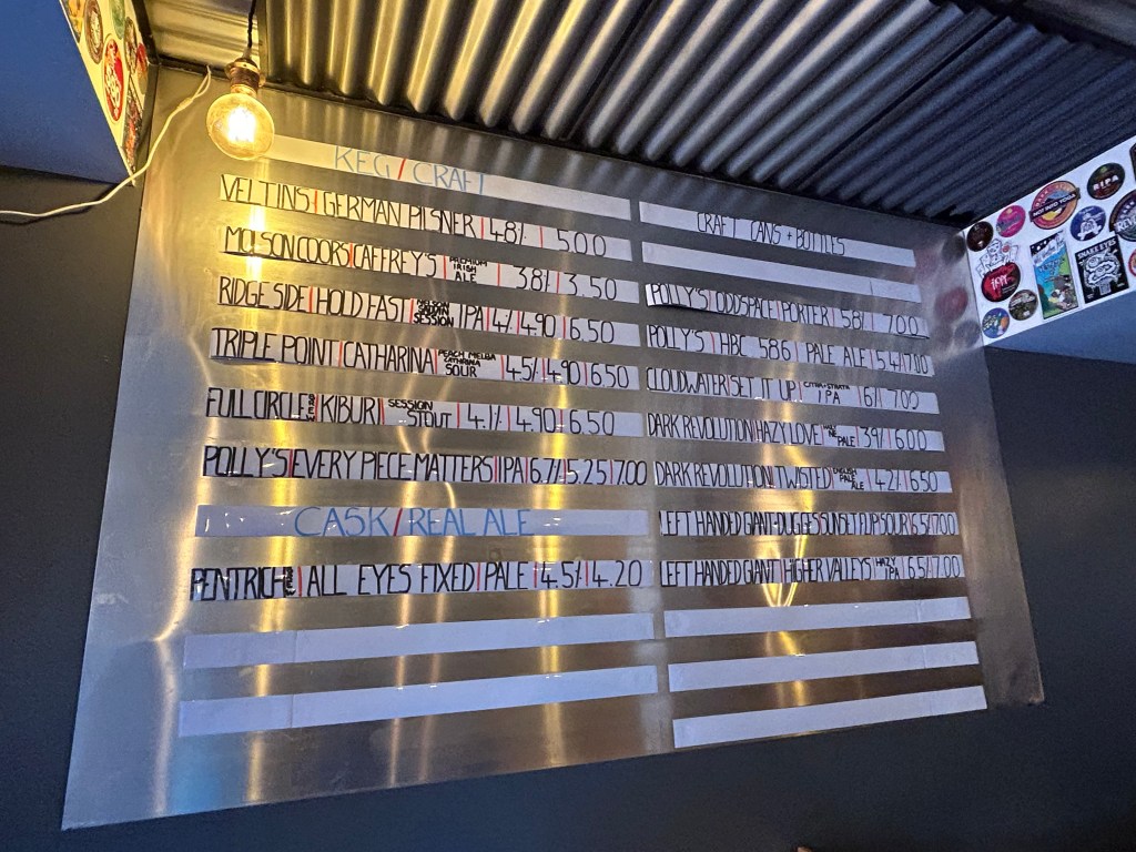A very popular busy micropub, serving a selection of one cask ale and 6 keg beers, aswell as a choice of cans. I went with “Catharina – Peach Melba” from Triple Point Brewing. A refreshing fruity sour beer.