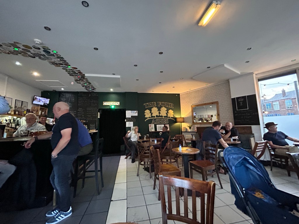 A short stroll around the corner to “The Four Ashes”. A family run micropub owned by the Ashe family (hence the name), again a really popular busy pub. Great to see!
