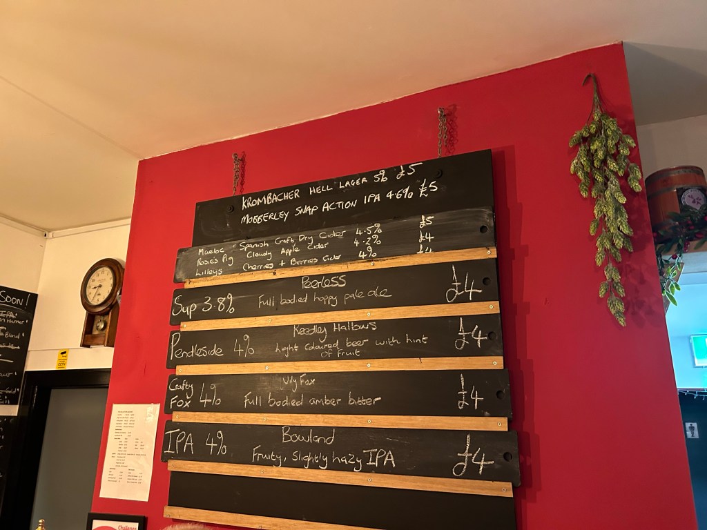 5 cask beers alongside 4 keg beers available, covering a range of styles. Spotted a Dark Mild, a style that you dont see around as much as id like. “Common” from Leigh based George Shaw Brewery (a new brewery for me). Really enjoyed this beer!